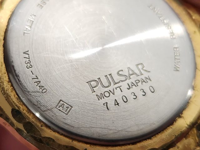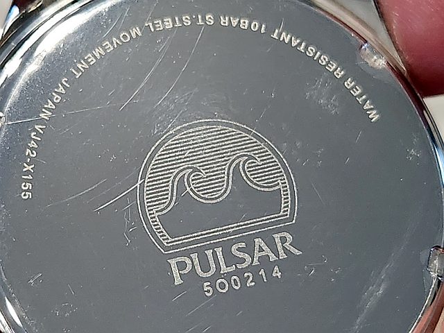 The caseback of my Pulsar with calibre VJ42, case number X155, and serial number 5O0214Calibre and Case Number