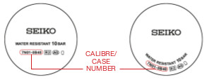 The calibre or movement of the watch is identified by a code on the caseback. Following the calibre is a dash followed by the case number. At this point in my research, it seems the case number is an identifier of the physical watch case itself. The combination of both the calibre and the case number seem to be fairly specific, however it does not seem to account for variations like colorways. I have encountered the combination of calibre and case number being given as the actual reference, but from my research so far this is not accurate.