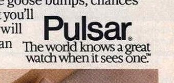 Pulsar slogan from a 1983 magazine ad